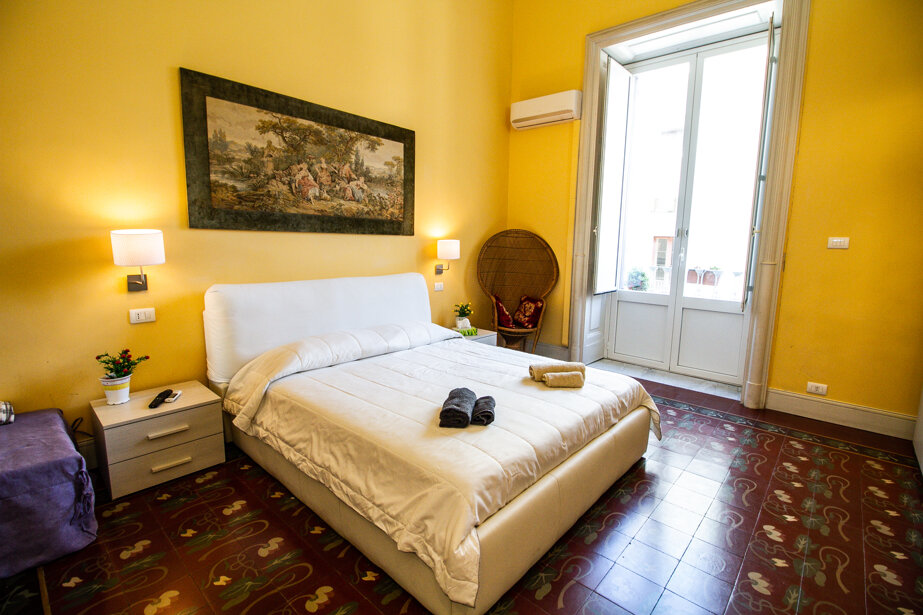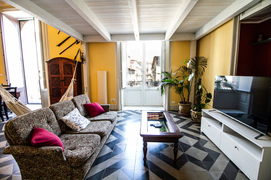 L'appartamento le Muse Catanesi si trova a soli 300 mt dalla Cattedrale di Piazza Duomo, dal Teatro greco romano e dai maggiori siti storici. Situato al secondo piano di un edificio del XIX secolo dotato di ascensore, è suddiviso su due livelli con un estensione di 120mq, ed è così composto: al piano inferiore si trovano una camera da letto matrimoniale, un ampio soggiorno con camera da letto twin soppalcata, bagno con vasca/doccia e cucina super attrezzata. Il piano superiore ospita la terza camera da letto matrimoniale, il secondo bagno con doccia e una zona relax con cabina sauna. Tutte le camere da letto, incluso zona living e bagni, sono dotati di aria condizionata. Inoltre, lo splendido soggiorno, con balconi che affacciano sulla via Garibaldi, è provvisto di un comodo divano con penisola, TV schermo piatto e Netflix. Tutte le camere hanno porte esterne con doppi infissi per consentirvi sonni tranquilli, lontani dai rumori della città. L'appartamento dispone anche di due lettini extra, pertanto la capienza massima è di 8 persone. A poca distanza dall'edificio è disponibile uno spazio privato gratuito per parcheggiare, non custodito, ma sorvegliato da videocamera. Da prenotare in anticipo.