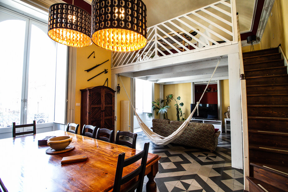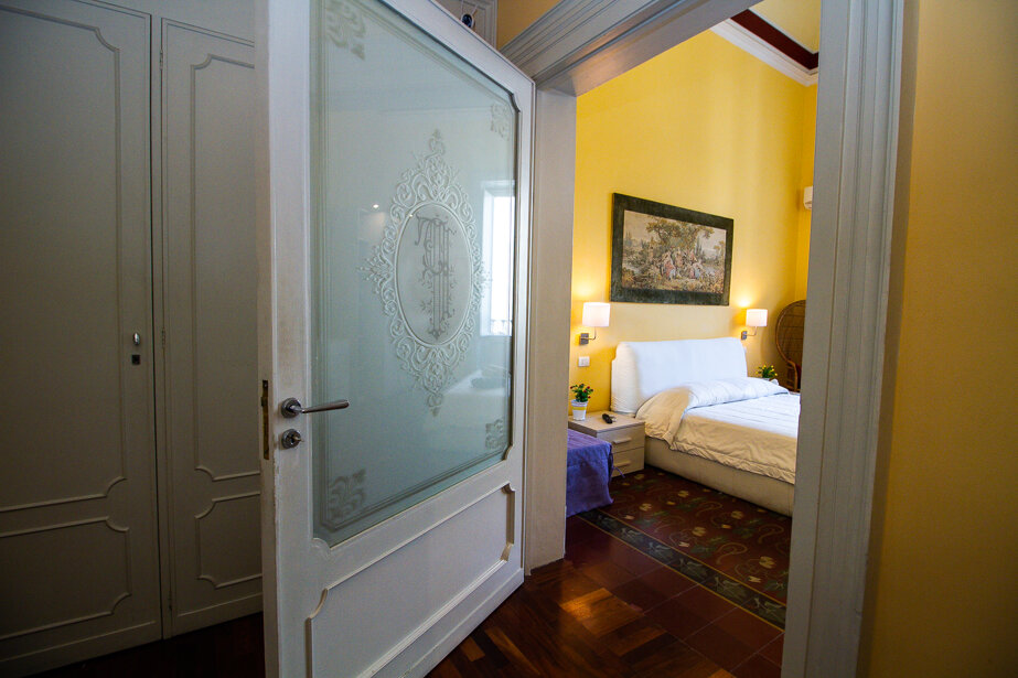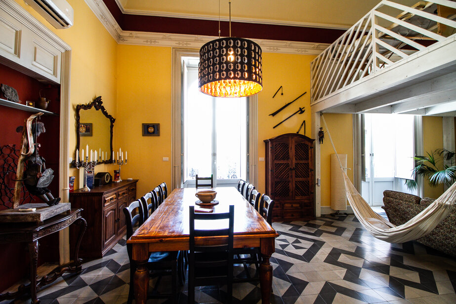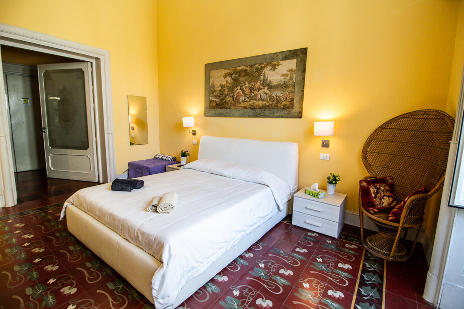 Le Muse Catanesi apartment is located just 300 meters from the Cathedral in Piazza Duomo, the Greek-Roman Theater and the most important historical sites. Located on the second floor of a 19th century building with lift, it is divided on two levels with an extension of 120sqm, and it is composed as follows: on the lower floor there is a double bedroom, a large living room with a twin bedroom in the mezzanine , bathroom with Jacuzzi and super-equipped kitchen. The upper floor houses the third double bedroom, the second bathroom with shower and a relaxation area with sauna cabin. All bedrooms, including the living area and bathrooms, are equipped with air conditioning. In addition, the splendid living room with balconies overlooking Via Garibaldi is equipped with a comfortable sofa, Tv and Netflix to make more comfortable your stay. All rooms have external doors with double frames to allow you to sleep peacefully, away from the noise of the city. The apartment also has two extra beds, therefore the maximum capacity is 8 people. You can book the garage (200mt far from the flat) for your car at the price of € 10 per day.